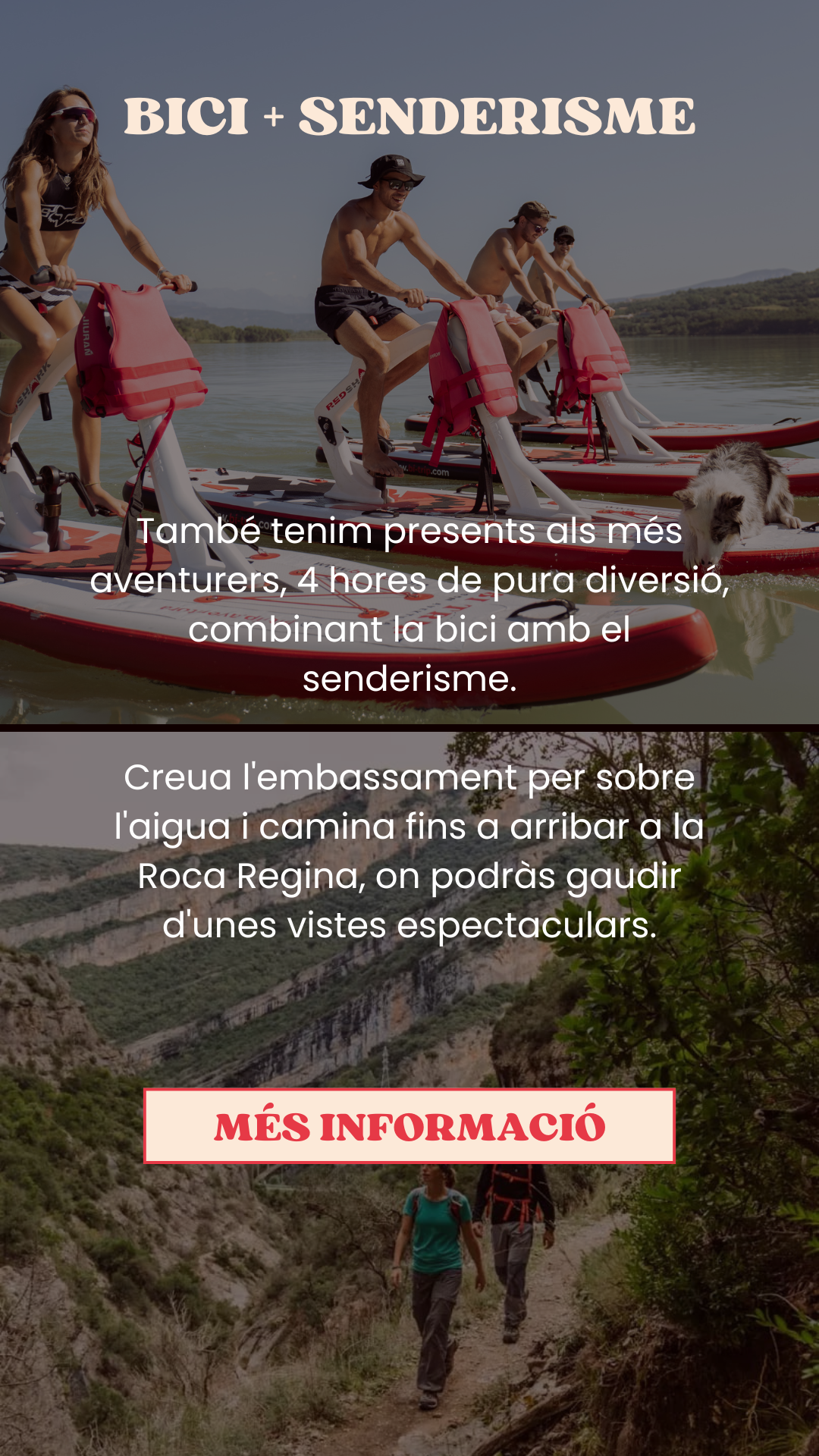 L'activitat s'iniciarà sempre des del nostre punt d'embarcament, a l'embassament corresponent. Depenent de l'activitat reservada, pot canviar el lloc de finalització.